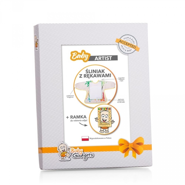 Czy Twojemu dziecku zdarzyło się ubrudzić podczas posiłku w tak finezyjny sposób, że pierwszą rzeczą jaką chciałeś zrobić to zdjęcie? Teraz to proste! Nasz śliniak z rękawami Baby Artist w zestawie z ramką do robienia zdjęć idealnie sprawdzi się dla uczącego się samodzielnych posiłków maluszka.