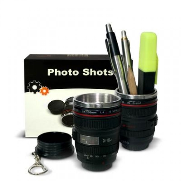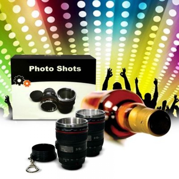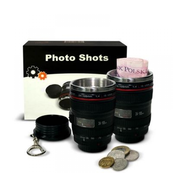 Niepowtarzalny komplet składający się z dwóch kieliszków miniobiektywów zapakowanych w eleganckie pudełko. Zestaw idealnie sprawdzi się jako prezent dla miłośnika fotografii i/lub fana plenerowych imprez. Kieliszki mają praktyczną pokrywkę z wygodnym zaczepem, dzięki czemu możemy nosić je wygodnie jak breloczek i mieć zawsze przy sobie. Dzięki możliwości zamknięcia miniobiektywów, możemy mieć pewność, że sprawdzą się świetnie nawet w najbardziej ekstremalnych warunkach. Oprócz tradycyjnego zastosowania, możemy ich użyć jako małego kubeczka do espresso, schowka na monety i inne drobiazgi, czy pojemnika na długopisy.